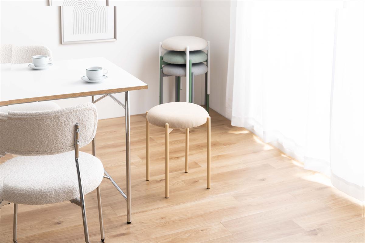 ラウンド型で座面と脚部の配色にこだわった『Mael(マエル)』スタッキングスツール