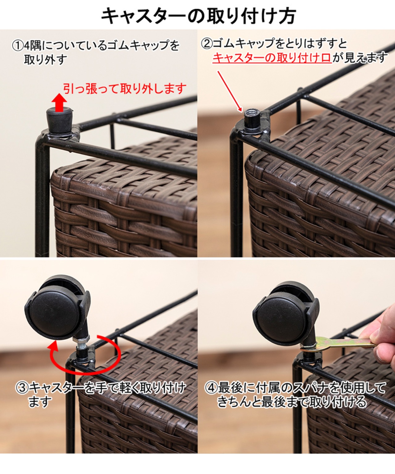 キャスター4個(うち2個ストッパー付き)