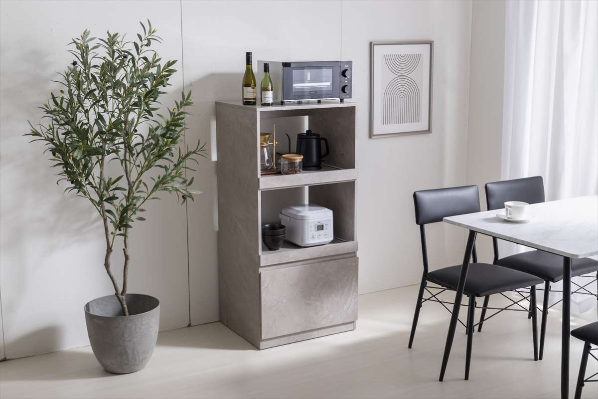 2つのスライドトレーでキッチン家電をスッキリ収納できる『Topu(トープ)』レンジ台