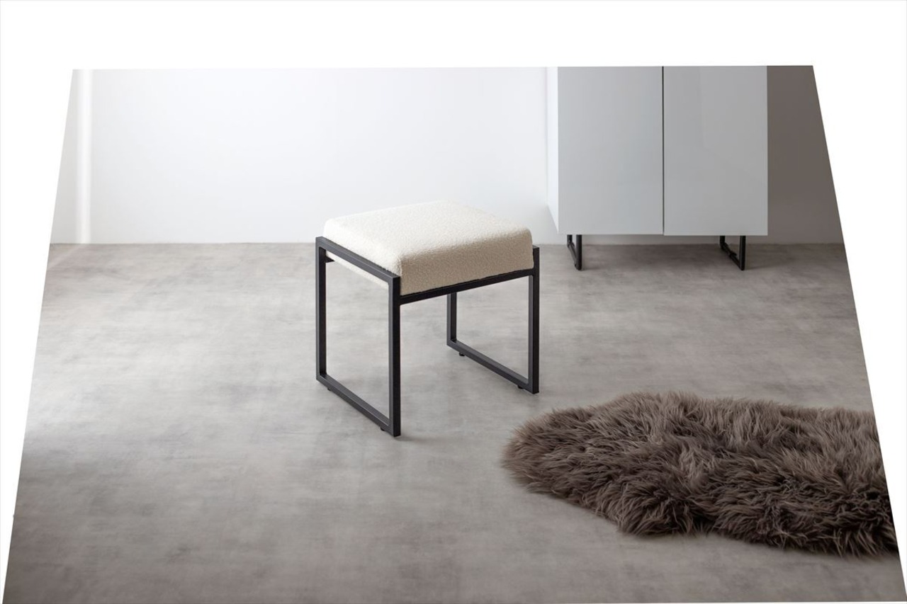 洗練されたデザインと柔らかなブークレ生地が魅力の『Pahu(パフ)』スクエアフレームスツール